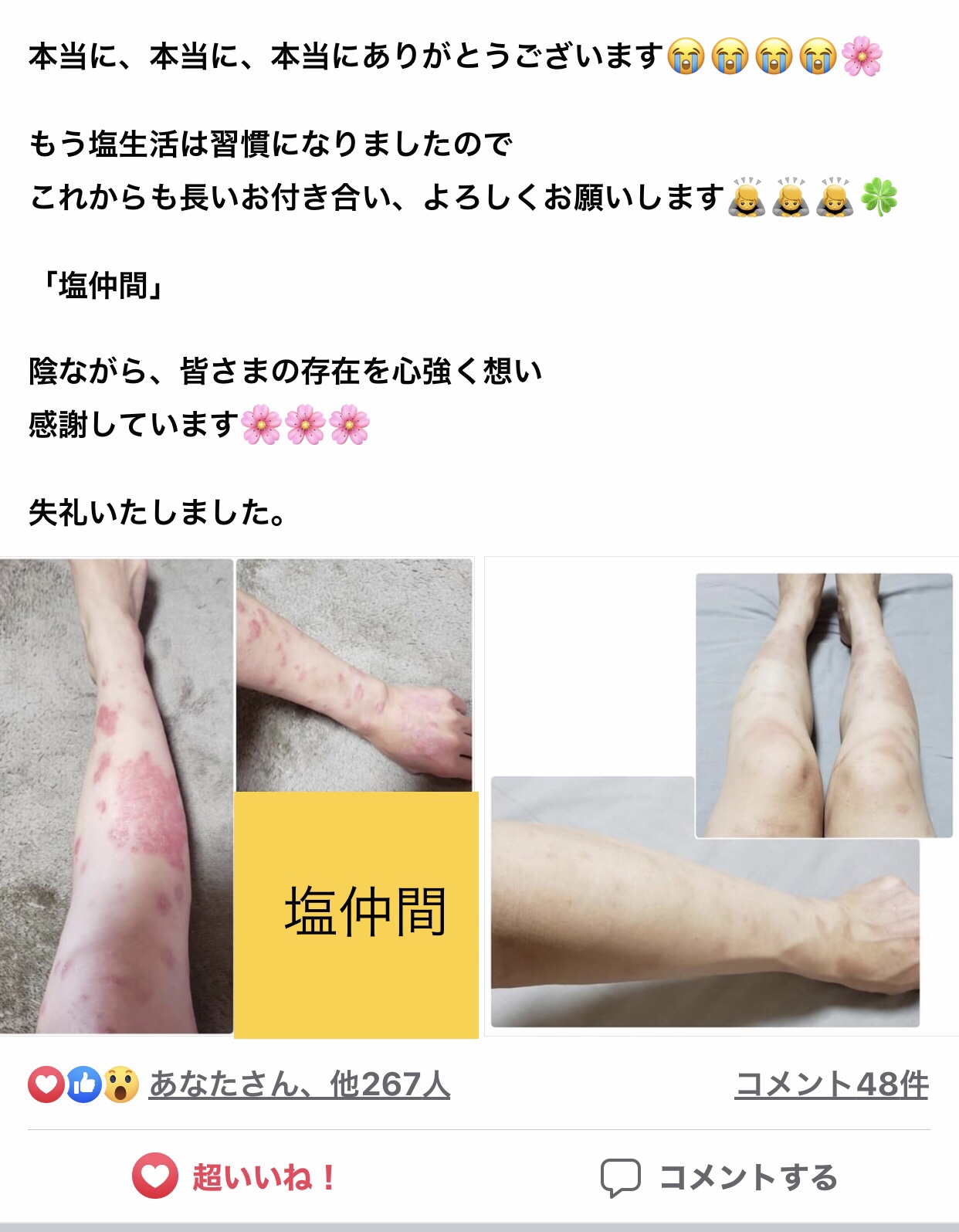 涙の掌蹠膿疱症改善。塩に効果がある【証拠写真あり】